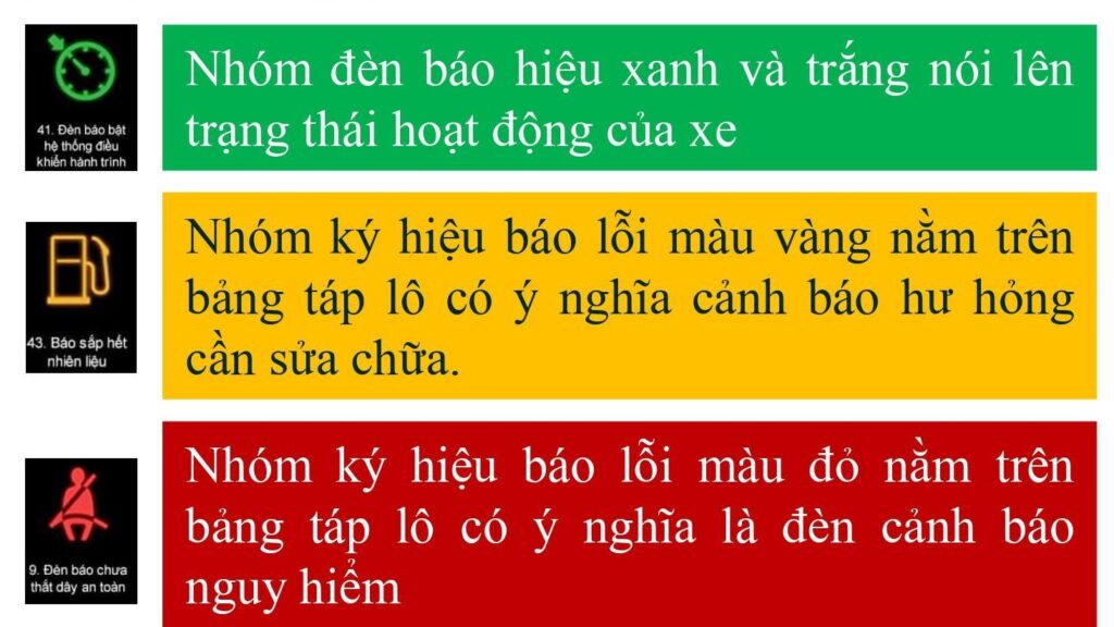 Đèn trên bản táp lô chuyển thành màu đỏ : Đây là trường hợp khẩn cấp, cần chú ý kiểm tra lại an toàn, đối với cảnh báo liên quan đến động cơ cách tốt nhất là cho xe cứu hộ về đại lý gần nhất.