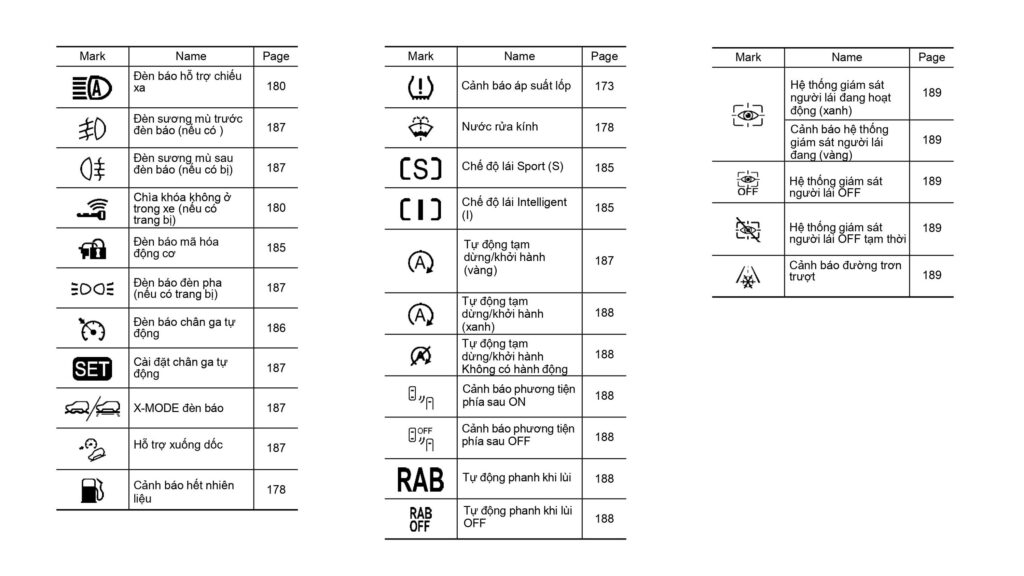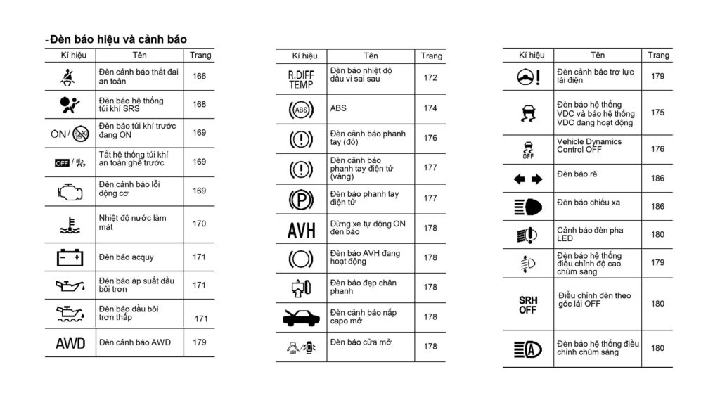 BA NHÓM ĐÈN CẢNH BÁO CHÍNH TRÊN XE SUBARU FORESTER