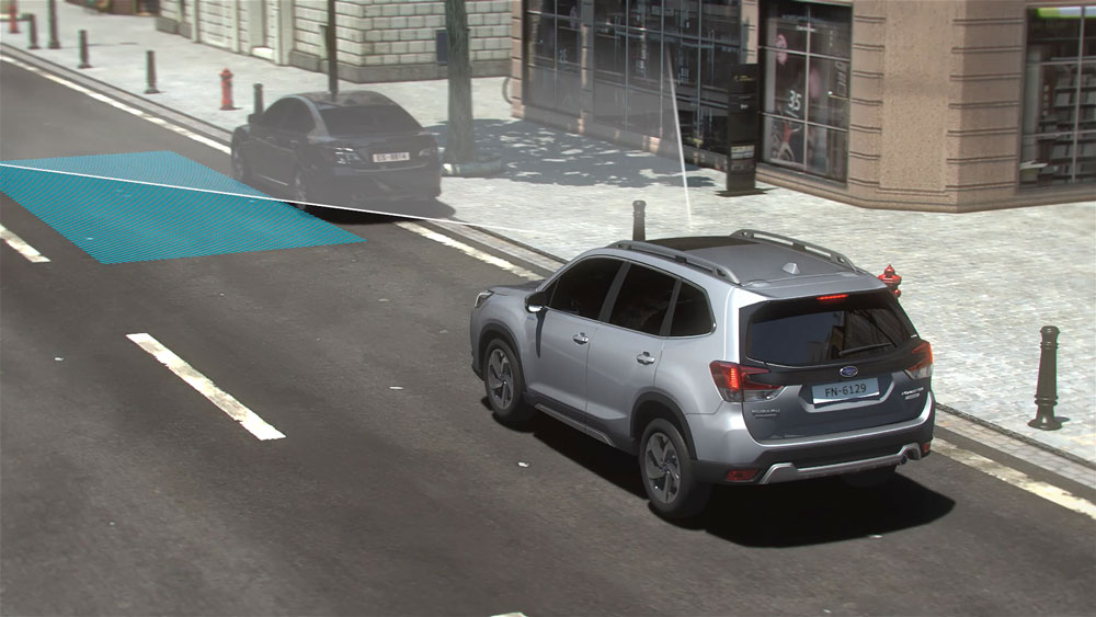 Phanh phòng tránh va chạm: EyeSight có khả năng phát hiện các nguy cơ va chạm và cảnh báo người lái bằng âm thanh và đèn báo. Điều này giúp người lái nhận biết được tình huống nguy hiểm và có thời gian phản ứng. Nếu người lái không có hành động phanh hay đánh lái để tránh va chạm thì hệ thống sẽ tự động phanh để tránh va chạm xảy ra.